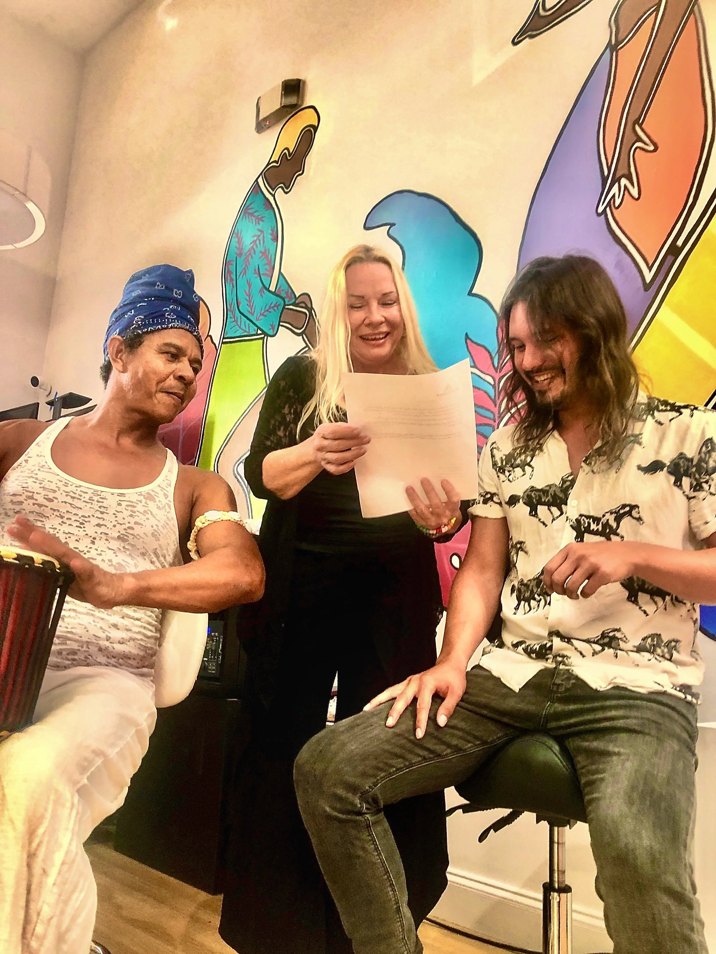 Creator and director Pamela Connolly goes over notes with music composer Dan Krysa and dancer Master Braz Dos Santos for Pasión Project’s “Bum Farto -The Musical,” a hilarious true crime musical that tells the tale of an infamous fire chief who tempted fate and federal agents who set him up in a 1975 Key West drug sting known as Operation Conch. The smokin’ hot show opens at the San Carlos Institute Theater in Old Town, Key West on Thursday, October 13 through October 27. Bumfartothemusical. Image by Cricket Desmarais.